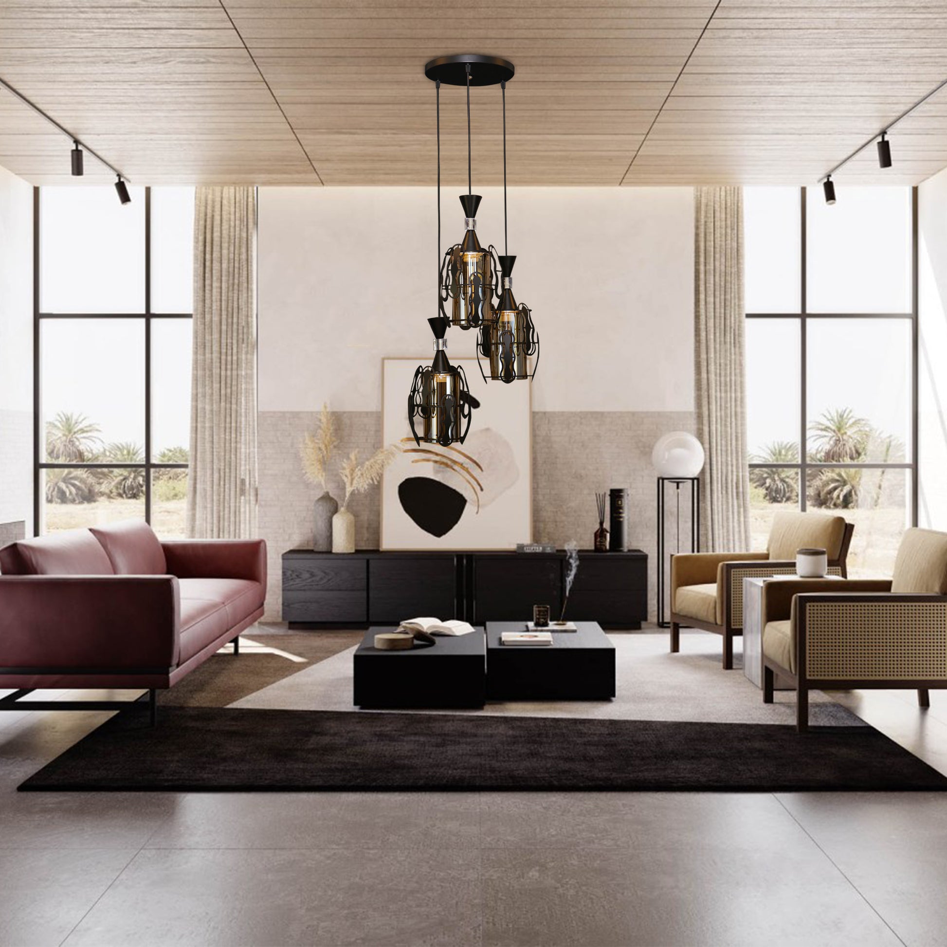 Pendul RFAN, Model 3996-3, cu Abajur, 3 x E27, Inaltime Reglabila, Negru
