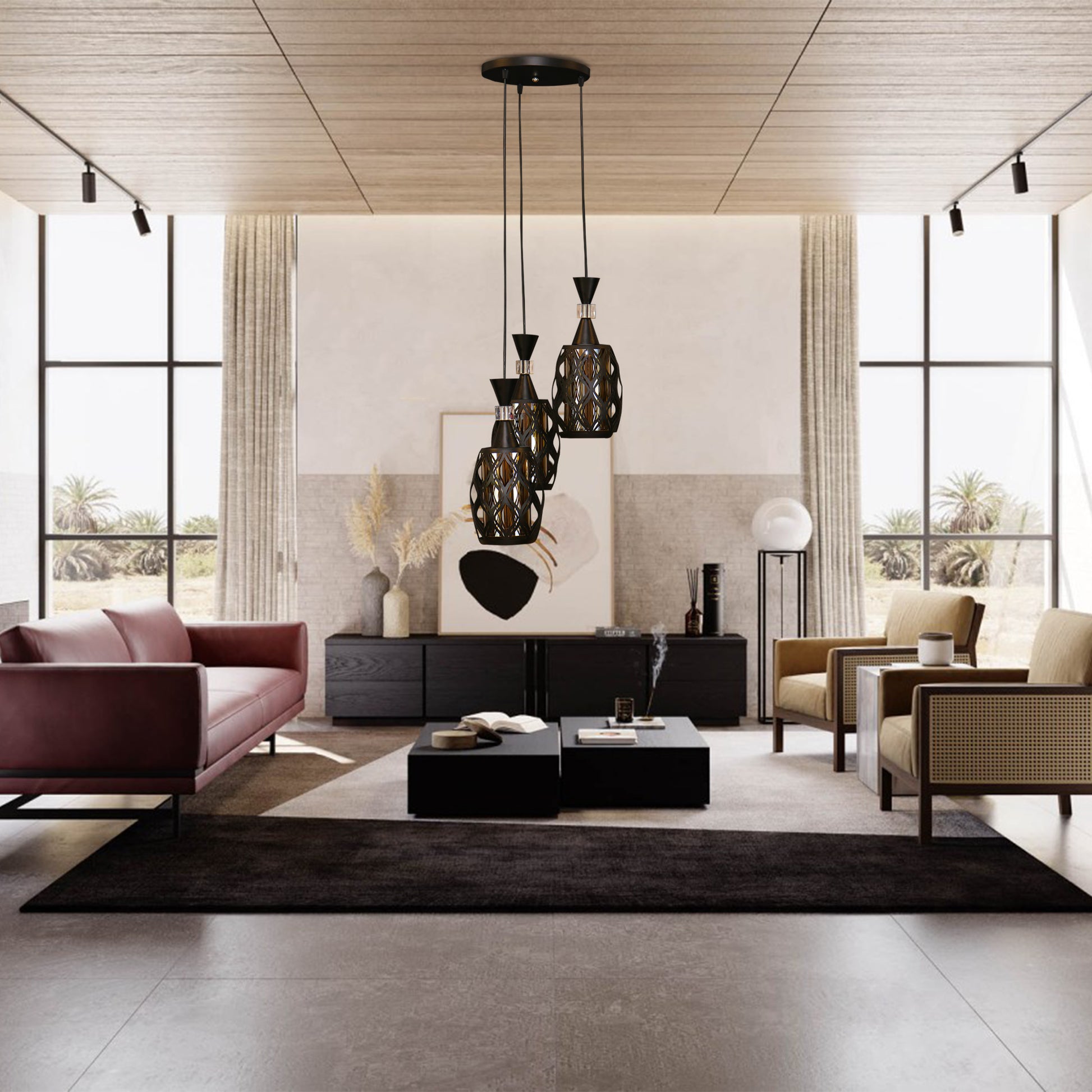 Pendul RFAN, Model 4107-3, cu Abajur, 3 x E27, Inaltime Reglabila, Negru