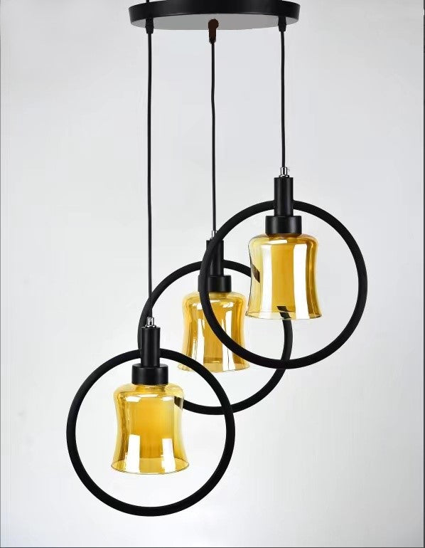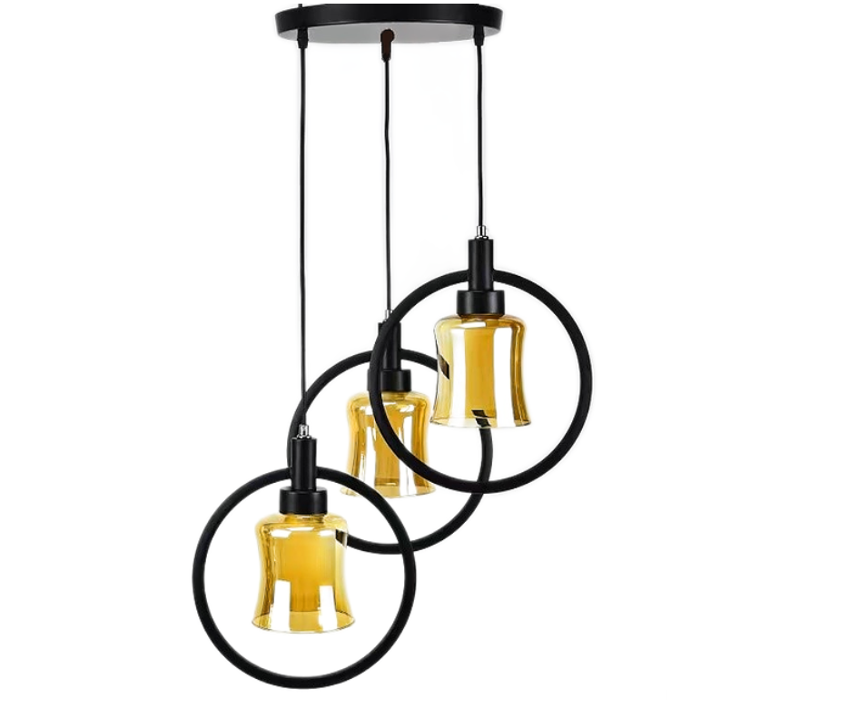 Pendul RFAN, Model 7438-3, cu Abajur, 3 x E27, Inaltime Reglabila, Negru