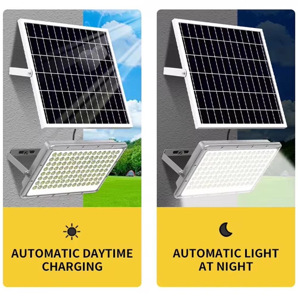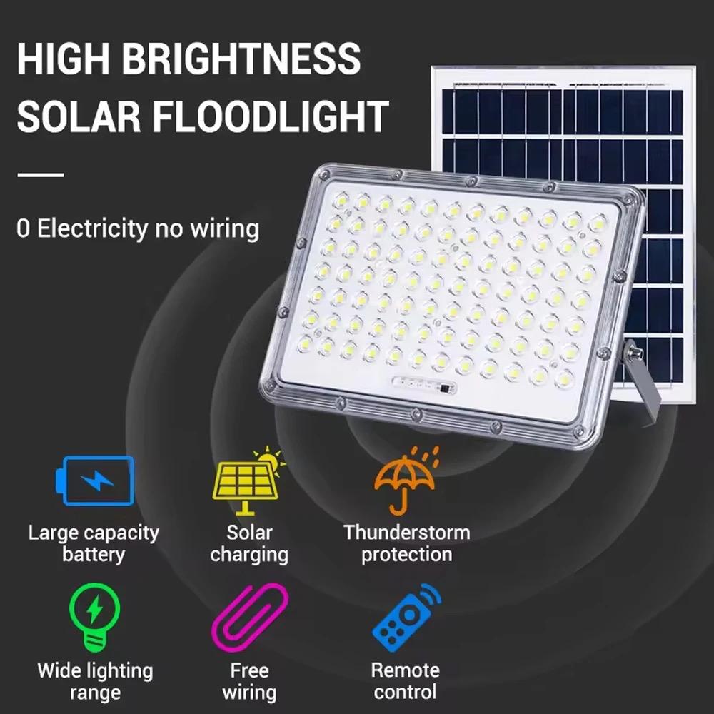 Proiector LED, cu Panou Solar si Telecomanda, Rezistent la Apa IP65, 50W, Gri