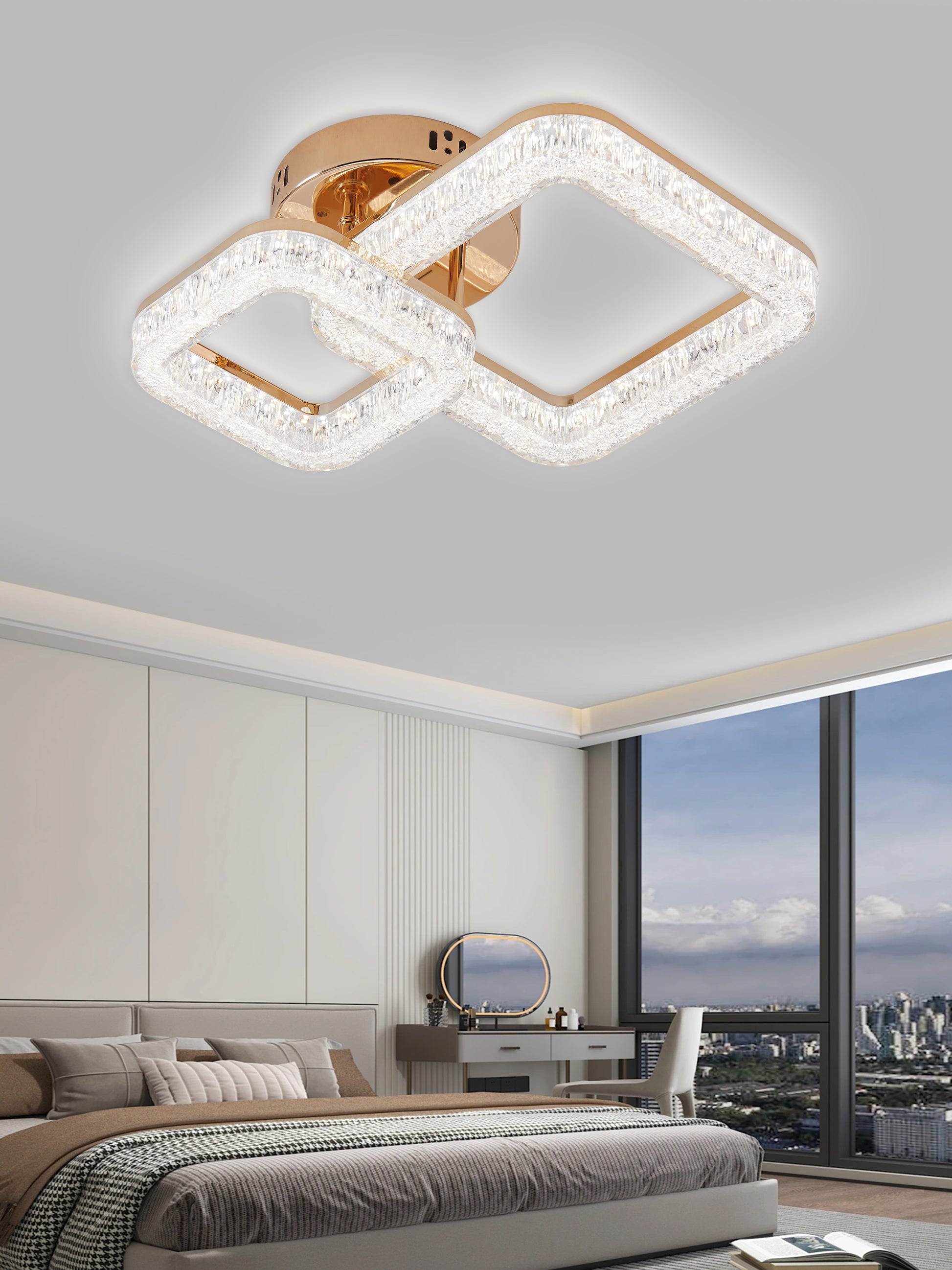 Lustra LED RFAN, Model K3535/1+1GD, Cu Telecomanda, 3 Tipuri De Lumina, Intensitate Reglabila, 80W, Auriu