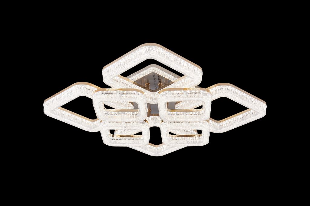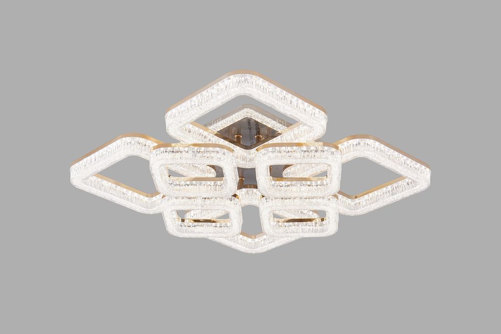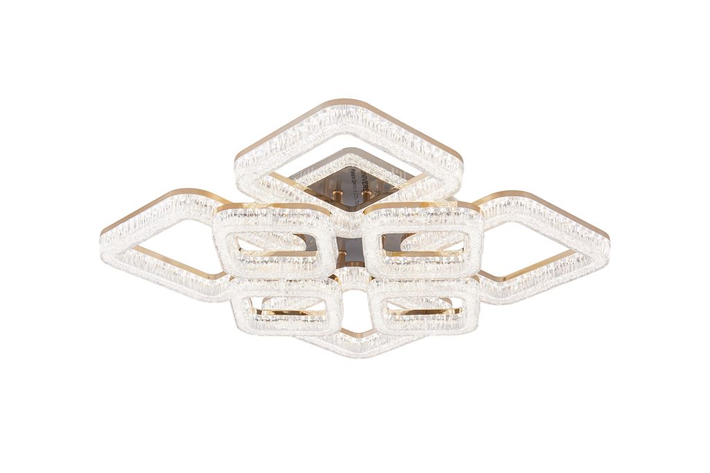 Lustra LED RFAN, Model K3535/4+4GD, Cu Telecomanda, 3 Tipuri De Lumina, Intensitate Reglabila, 200W, Auriu
