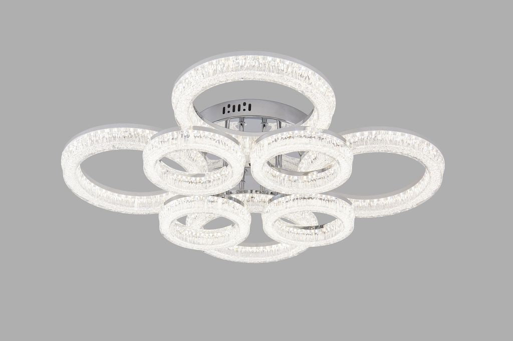 Lustra LED RFAN, Model K3536/4+4CH, Cu Telecomanda, 3 Tipuri De Lumina, Intensitate Reglabila, 240W, Argintiu