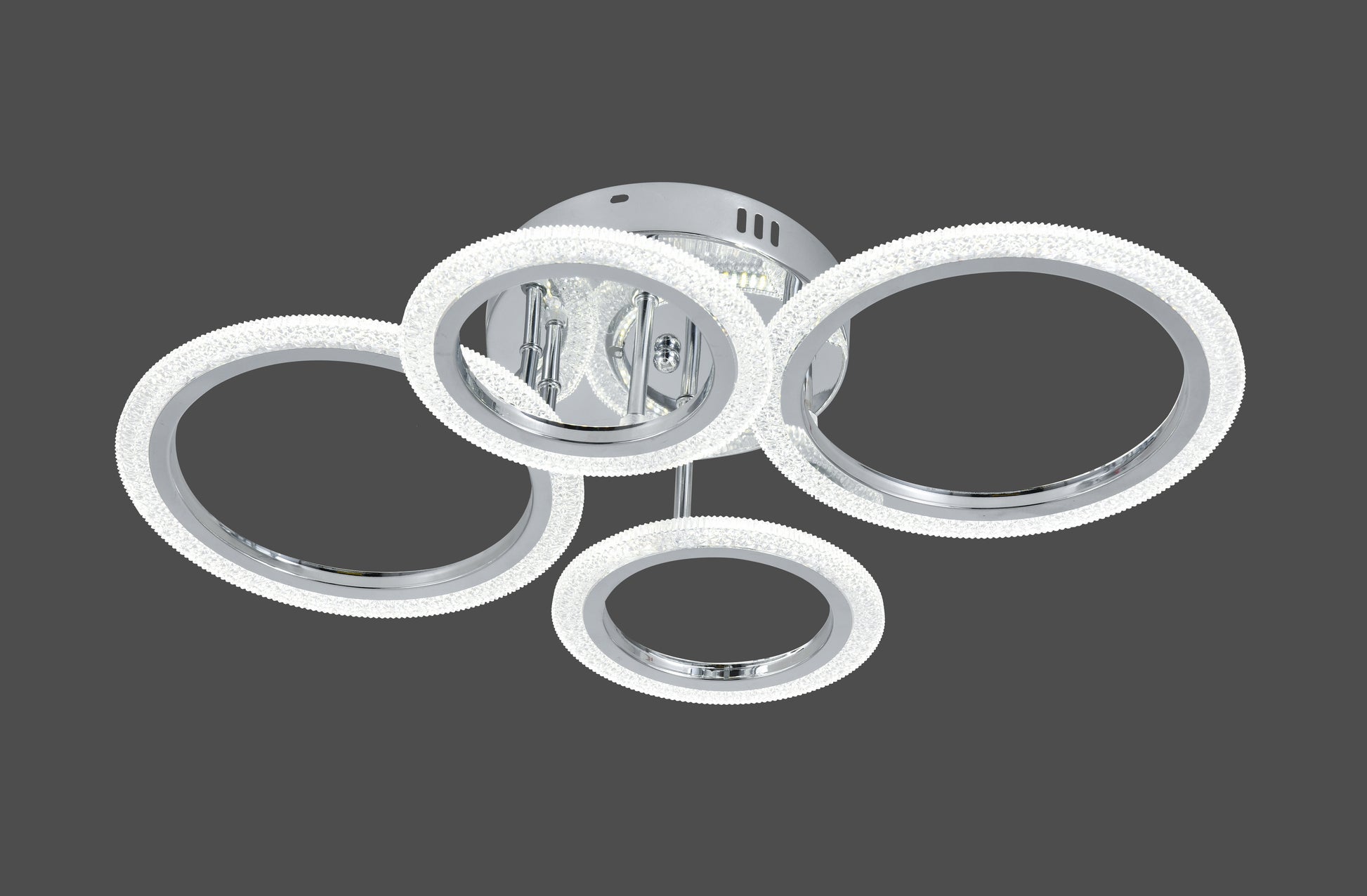 Lustra LED RFAN, Model R9180/2+2, Cu Telecomanda, 3 Tipuri De Lumina, Intensitate Reglabila, 72W, Argintiu