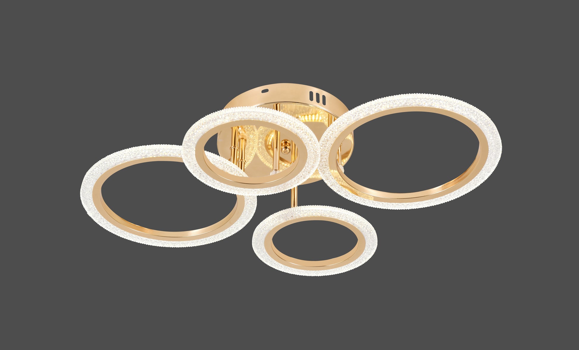 Lustra LED RFAN, Model R9180/2+2, Cu Telecomanda, 3 Tipuri De Lumina, Intensitate Reglabila, 72W, Auriu