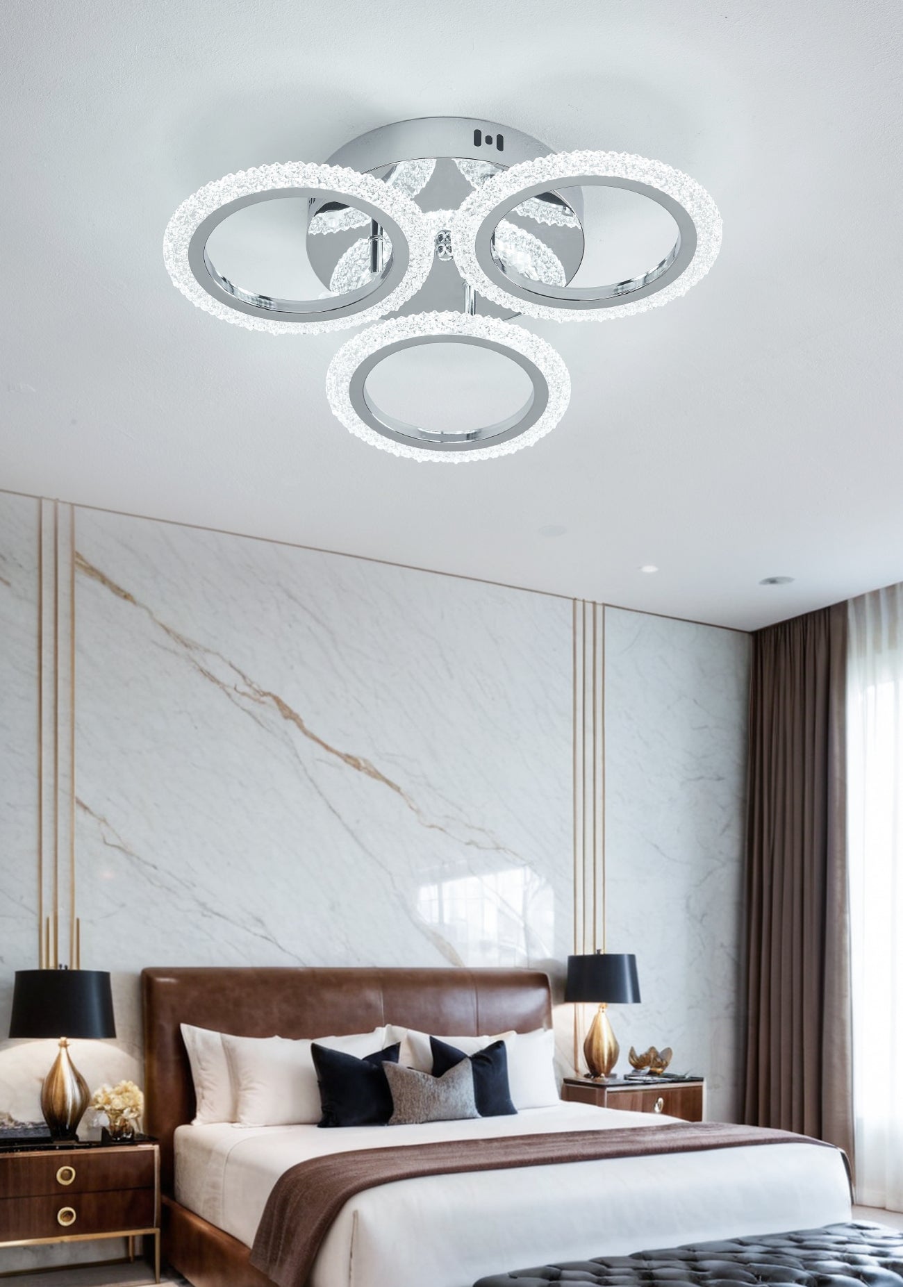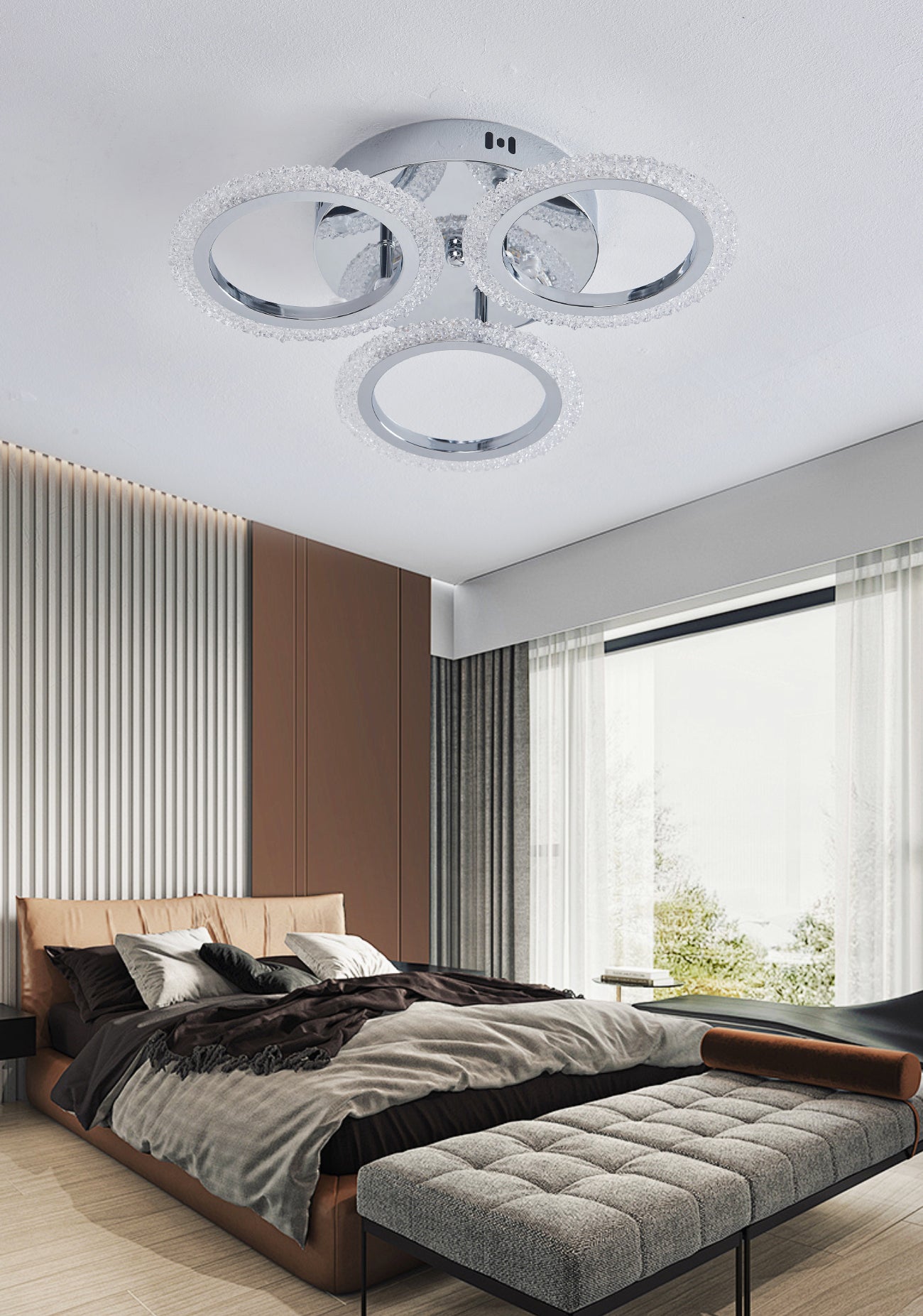 Lustra LED RFAN, Model DQ001-3, Cu Telecomanda, 3 Tipuri De Lumina, Intensitate Reglabila, 48W, Argintiu