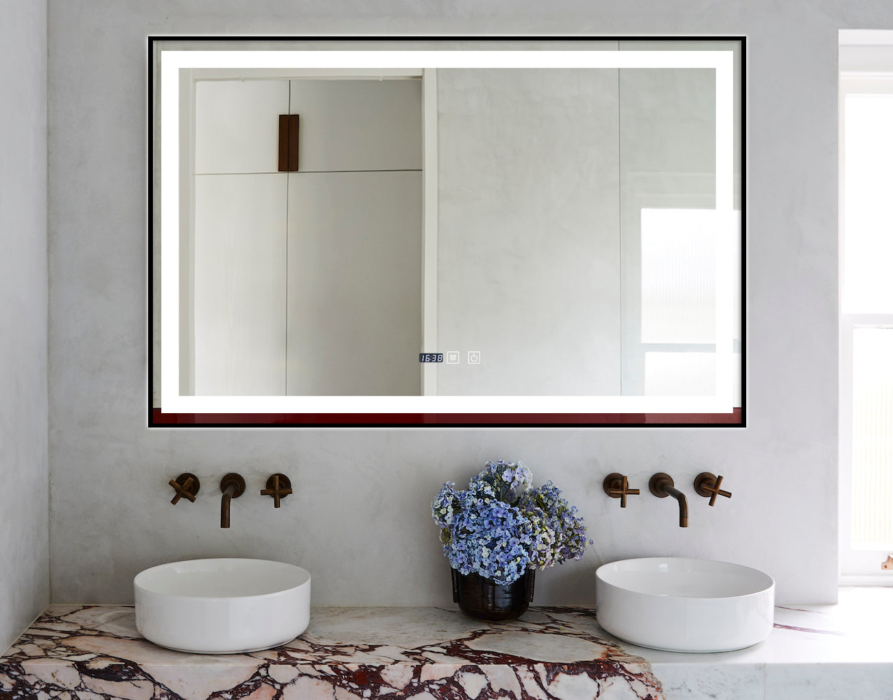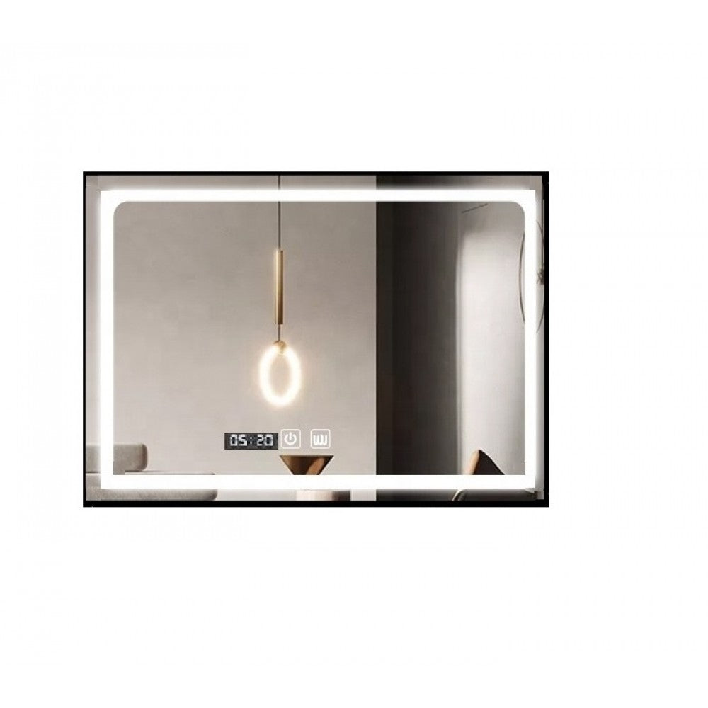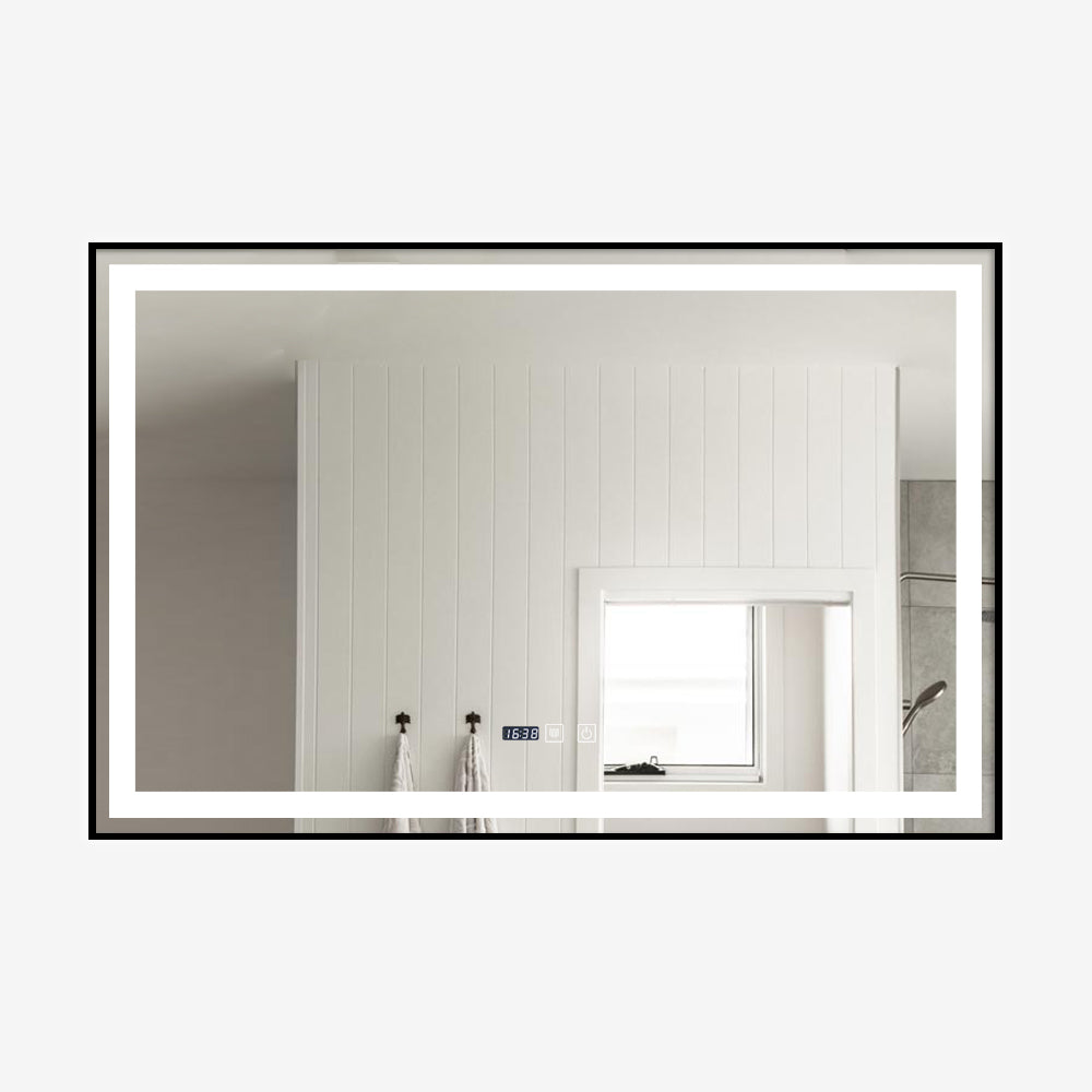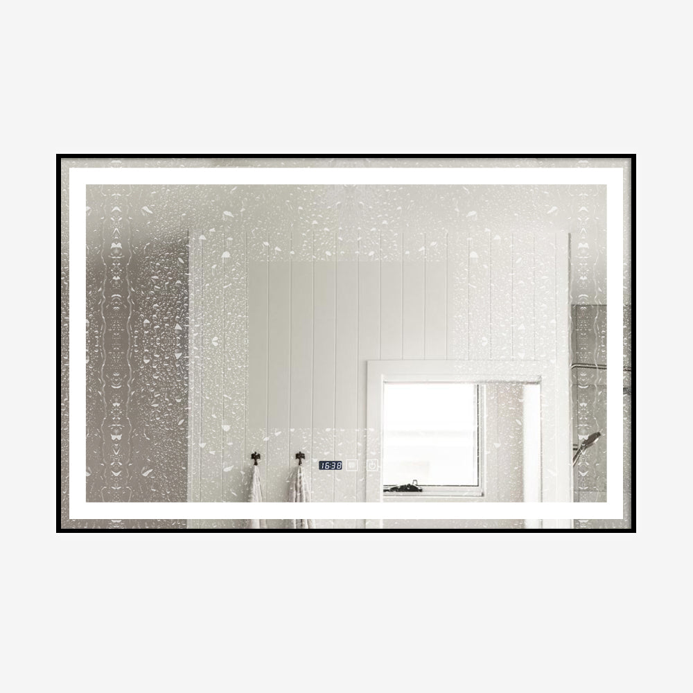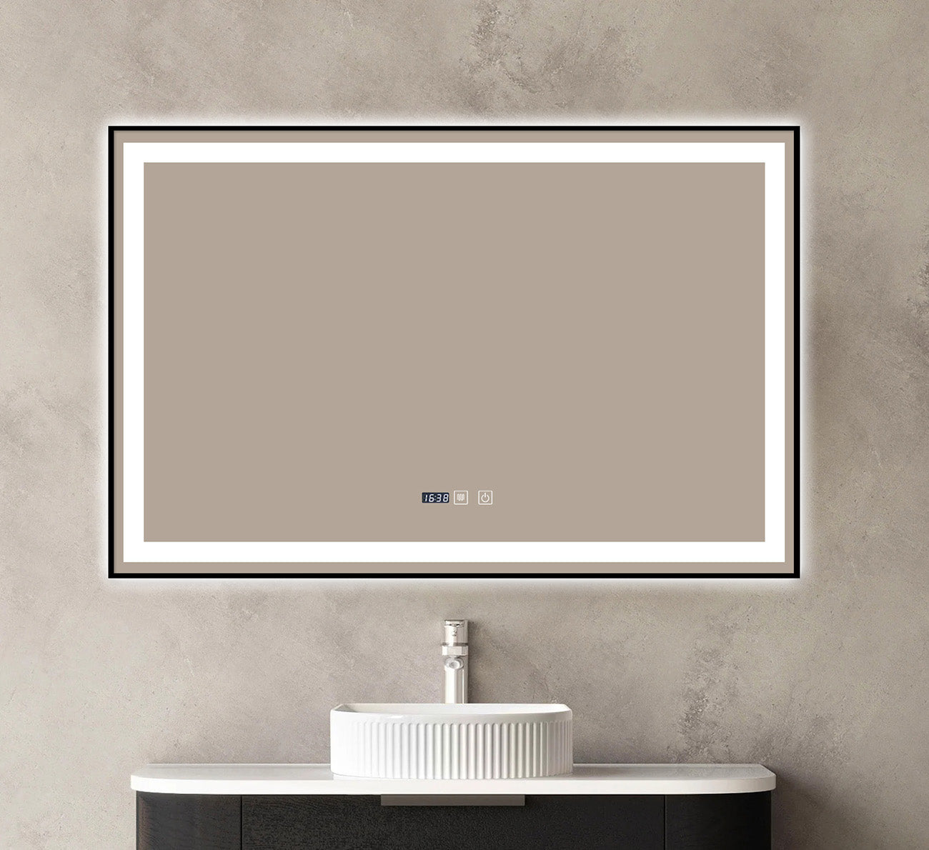Oglinda LED si Touch, 100 x 65 cm, cu Functie Dezaburire si Ceas, Rama Negru Mat, Smack