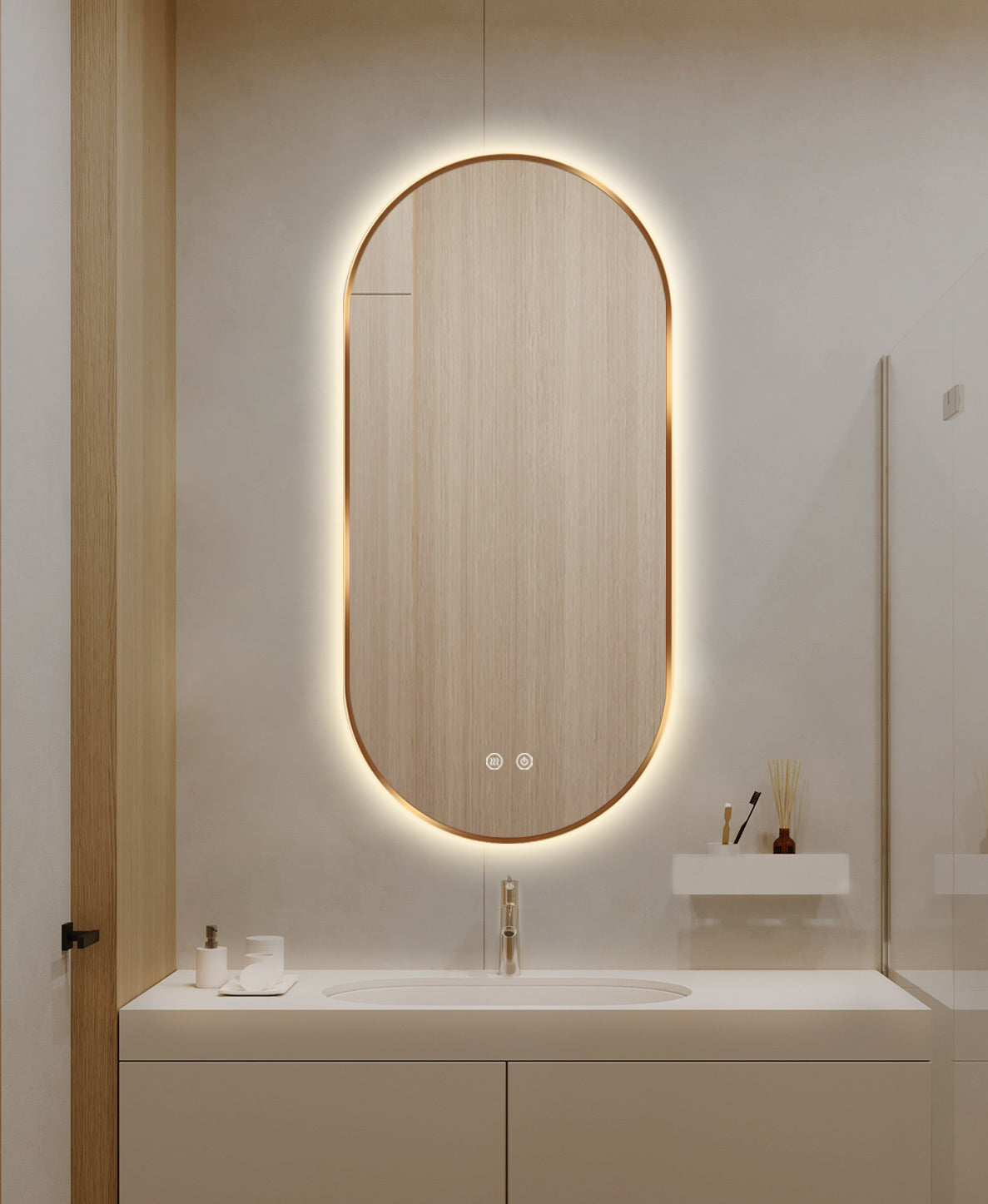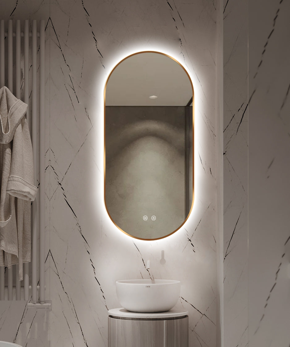 Oglinda LED Si Touch, 50 X 100 Cm, Functie Dezaburire, Rama Auriu-Bronz, Trei Tipuri Lumina, J179-50100, Smack