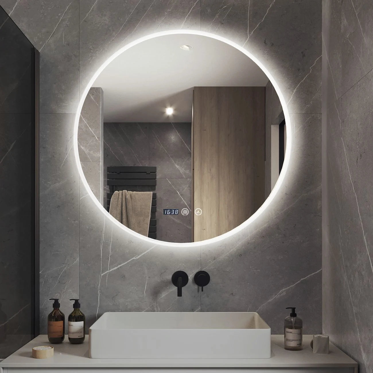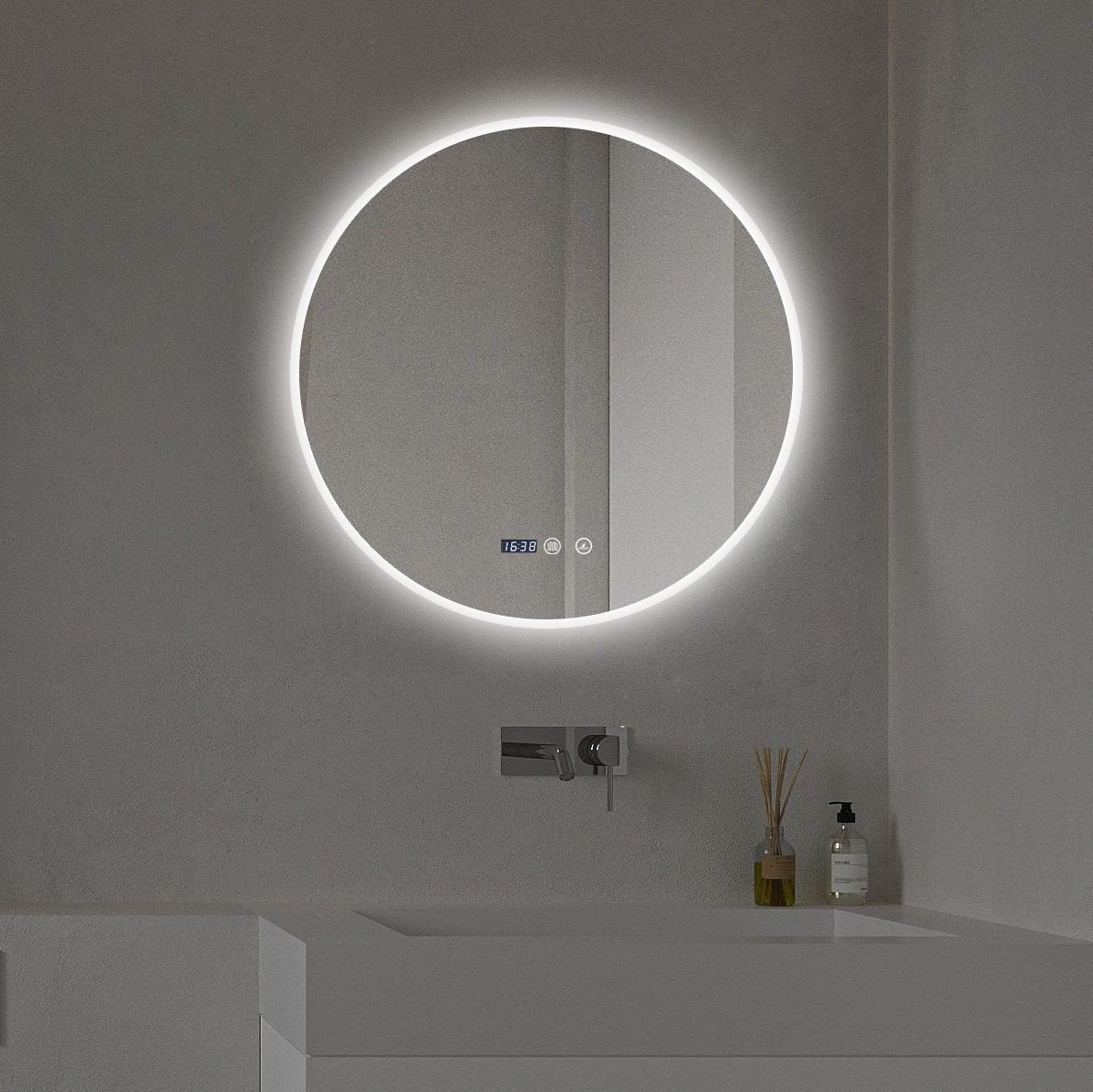 Oglinda LED si Touch, cu Functie Dezaburire si Ceas, 3 Tipuri De Lumina, Rama Acril, 70 cm, J182-70 Smack