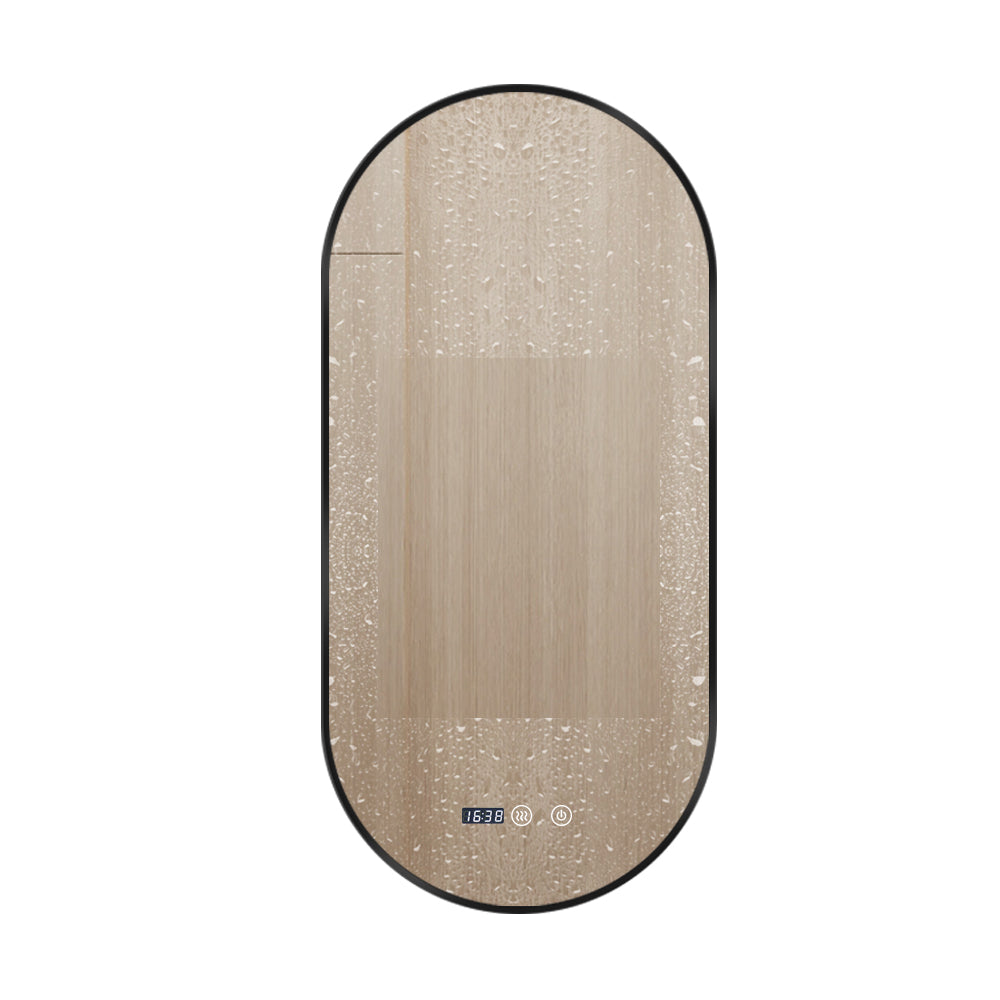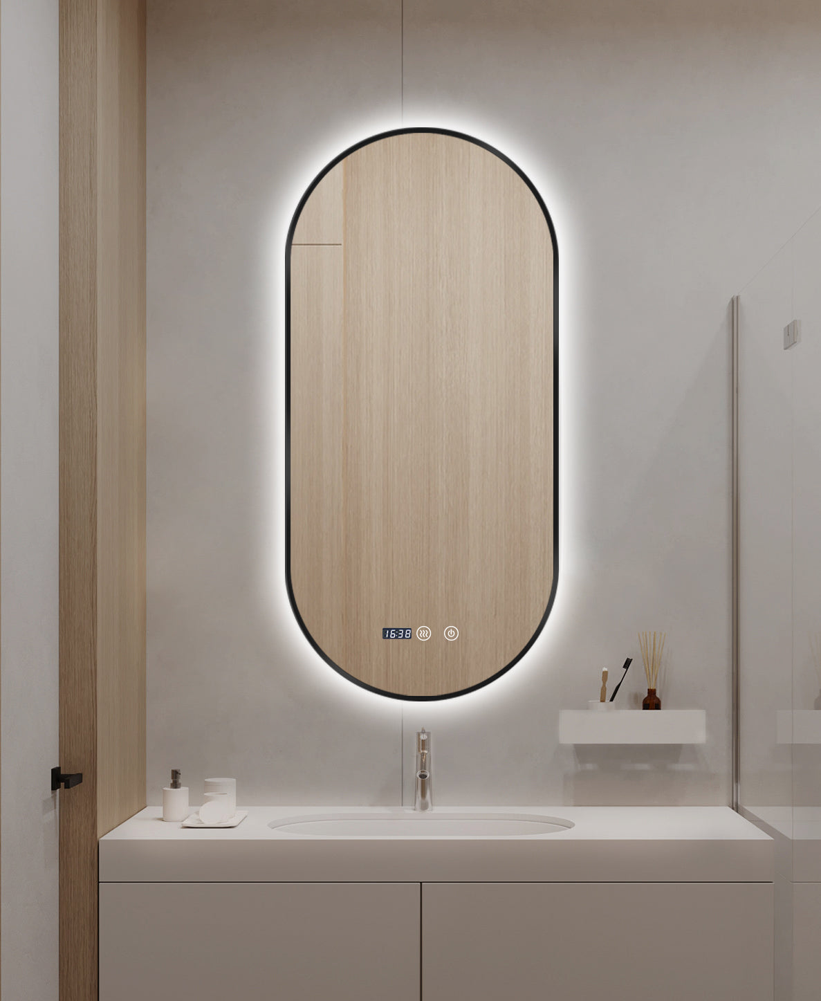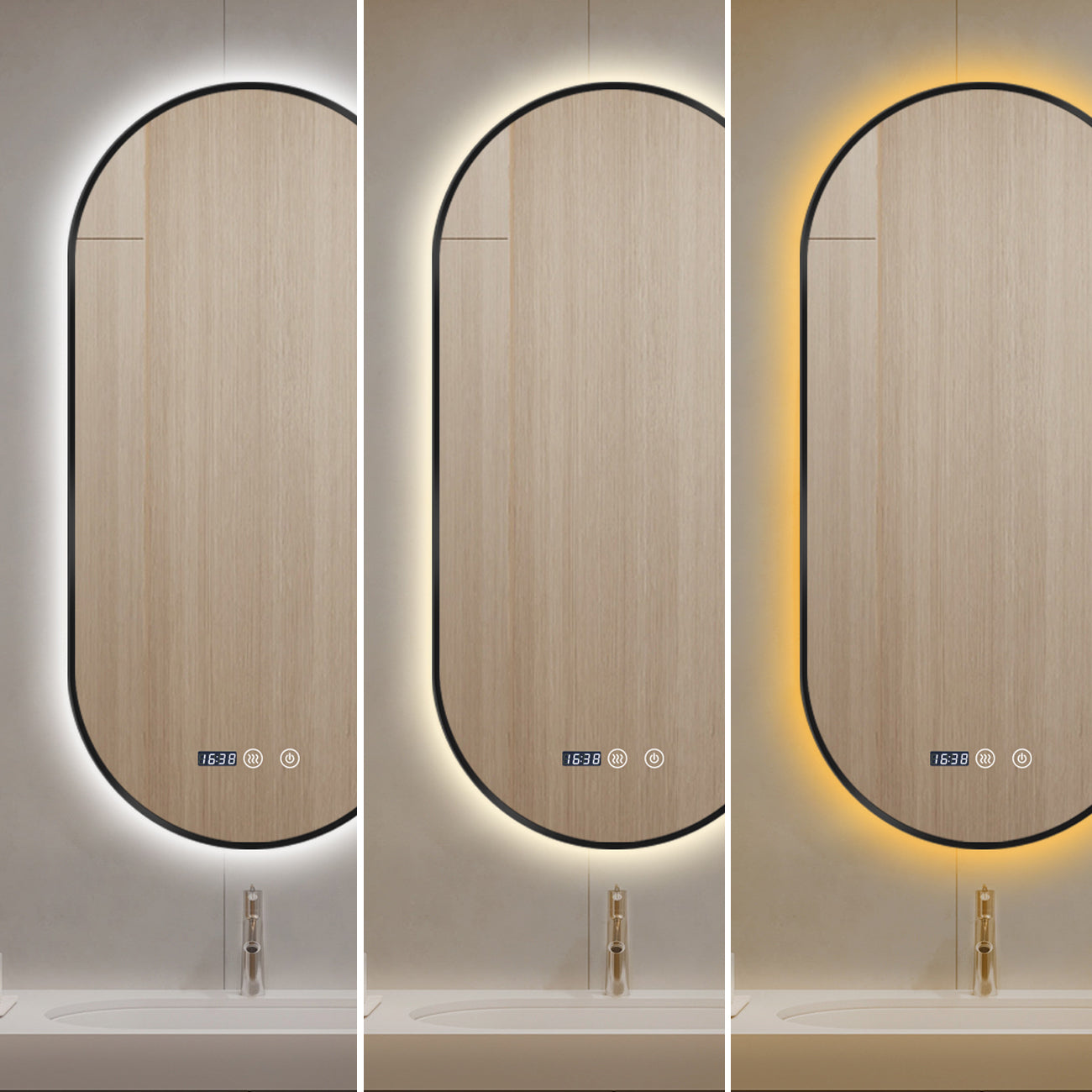 Oglinda LED si Touch, cu Functie Dezaburire si Ceas, 3 Tipuri De Lumina, Rama Negru Mat, 50 x 100 cm, J180-50100 Smack