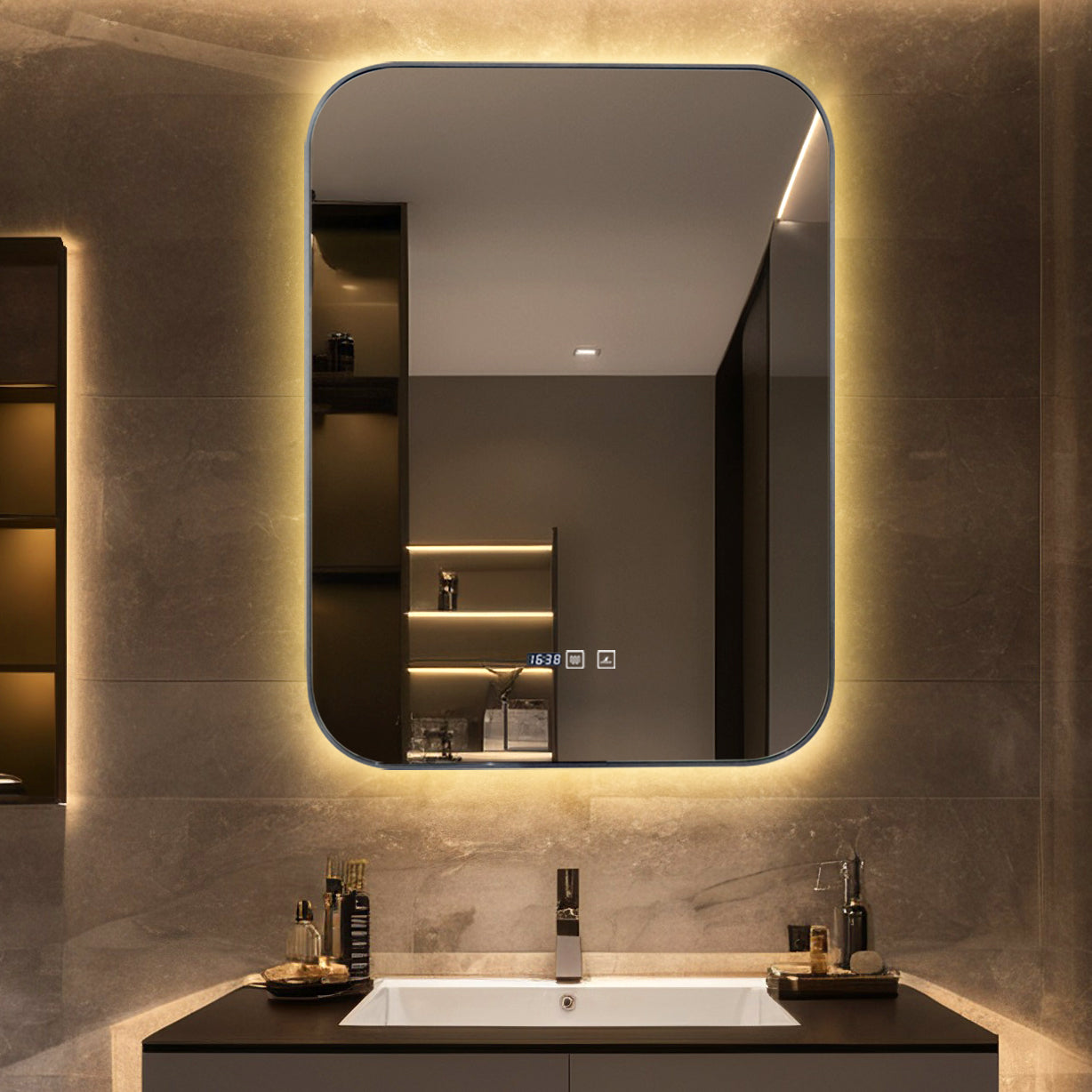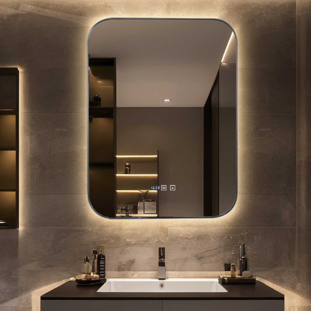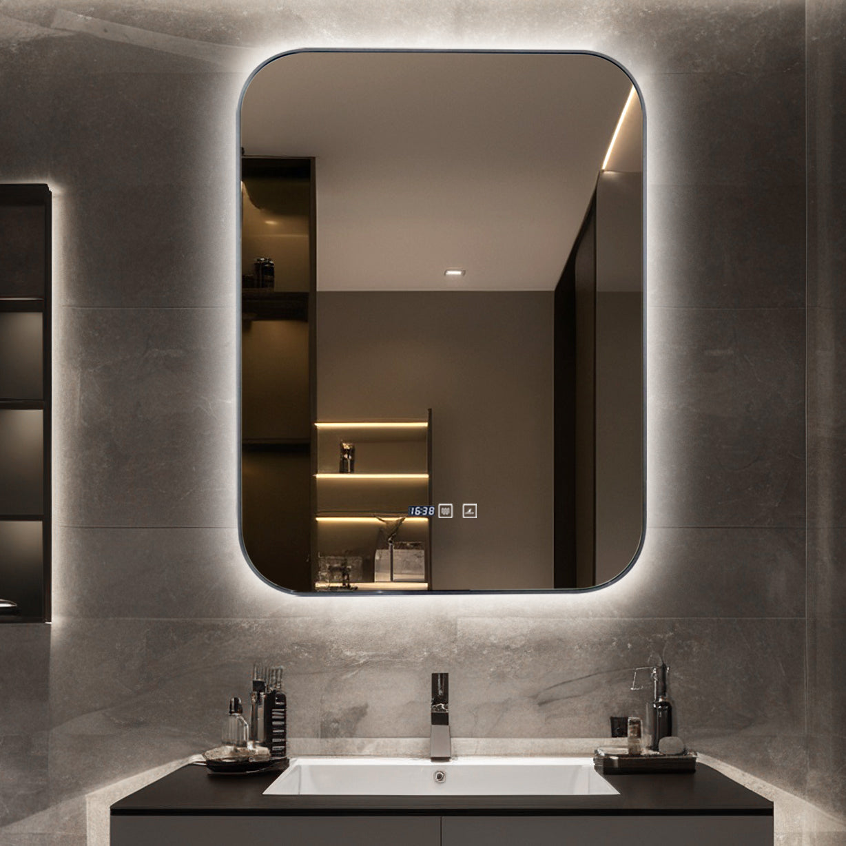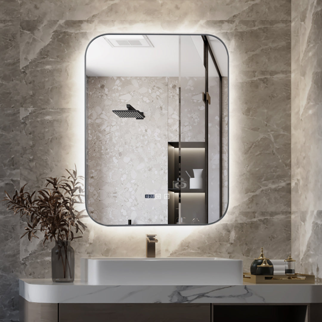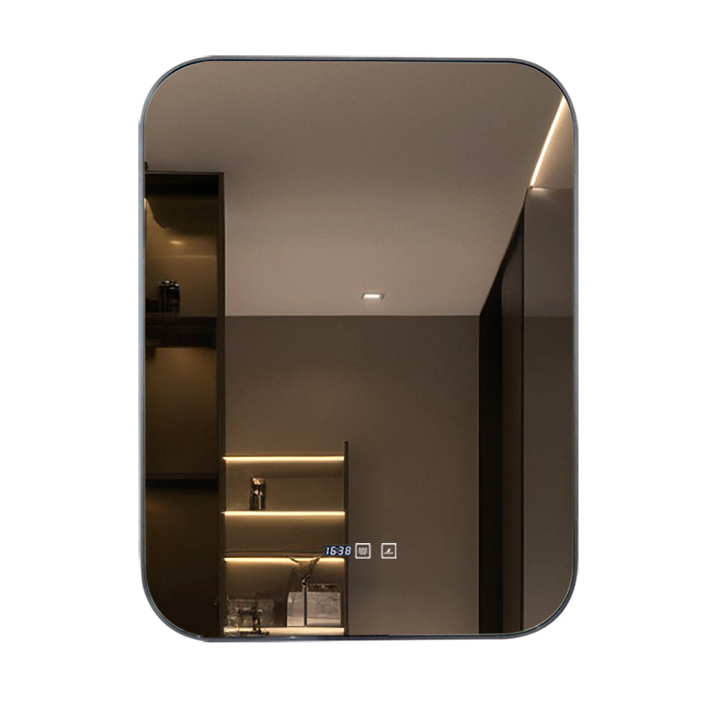 Oglinda LED Si Touch, Cu Functie Dezaburire Si Ceas, Rama Gri, 60 x 80 cm, J187 Smack