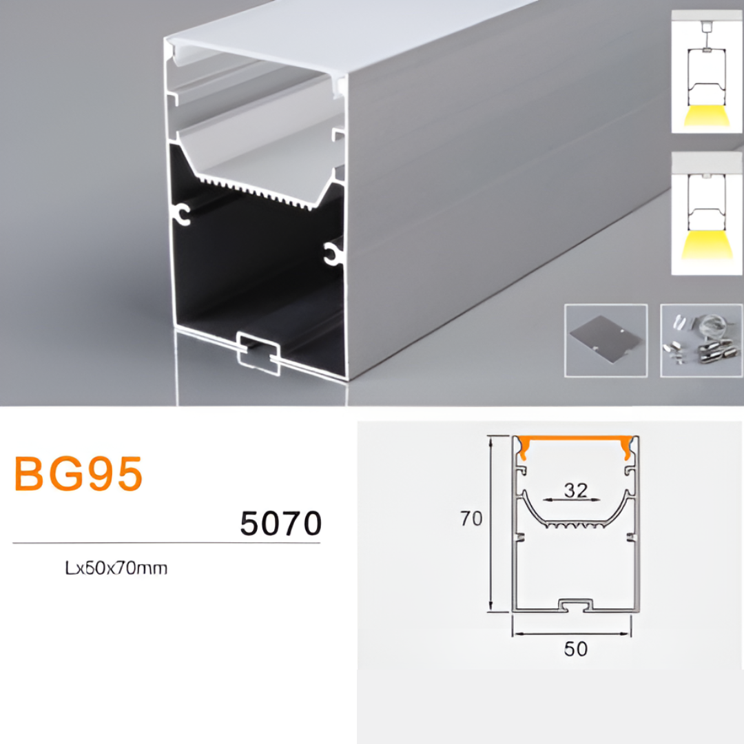 Setul include dispersor difuzare lumina, capace de capat si sistem de suspendare.