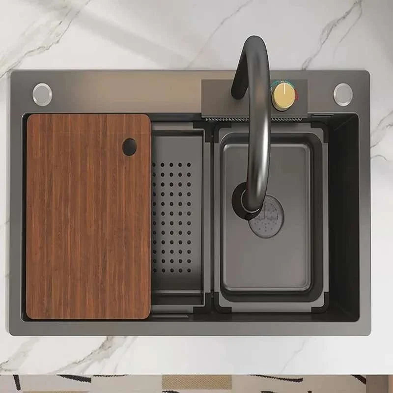 Chiuveta Multifunctionala pentru Bucatarie, Inox, Gri Inchis - Negru, 75x45 cm, FY 3018 Smack