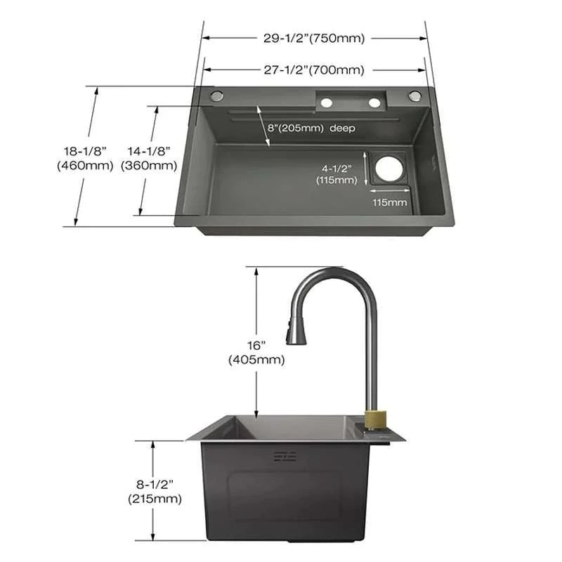• Chiuveta de bucătărie profesională multifuncțională FY3018 este realizată din oțel inoxidabil de înaltă calitate, finisată într-o elegantă nuanță de gri închis – negru.