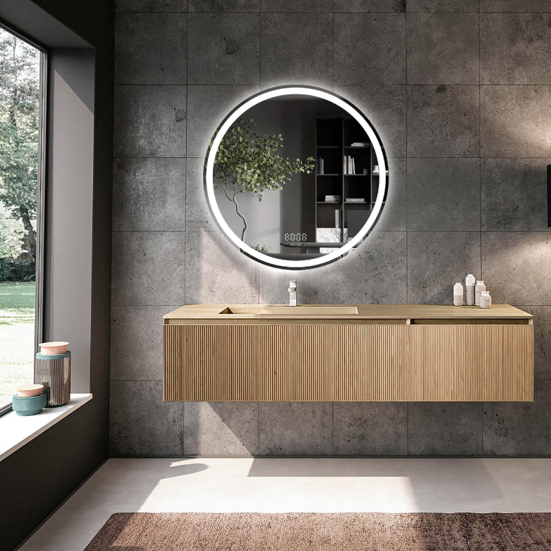 Transformă baia într-un spa modern și funcțional cu oglinda LED rotundă premium de 70×70 cm, creată pentru confort, estetică și tehnologie inteligentă. Oglinda este fabricată din sticlă argintie de 5 mm, fără cupru (tehnologie anti-oxidare), cu iluminare dublă (față + margine/spate) și senzori de miscare integrați pentru control total al funcțiilor fara a atinge oglinda.