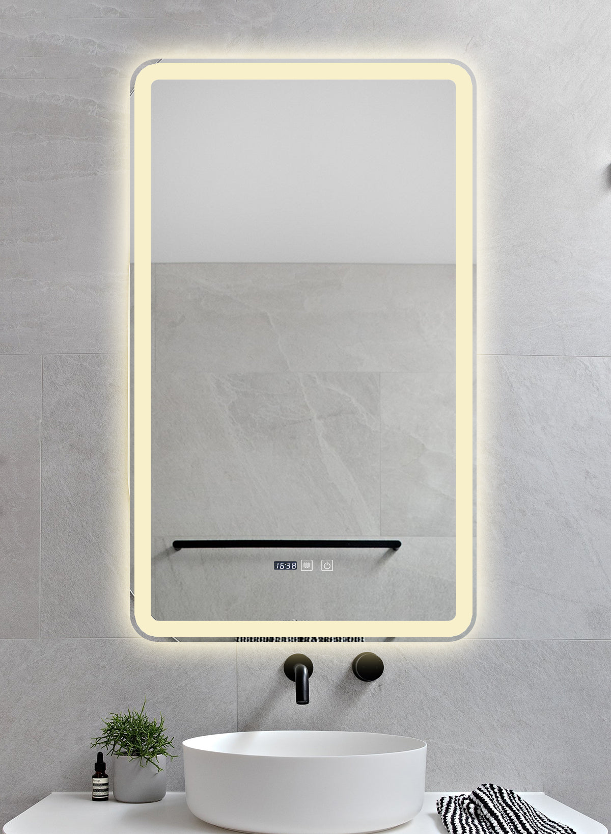 Oglinda LED si Touch, cu Functie Dezaburire si Ceas, 3 Tipuri De Lumina, 60x100 cm, J169 Smack