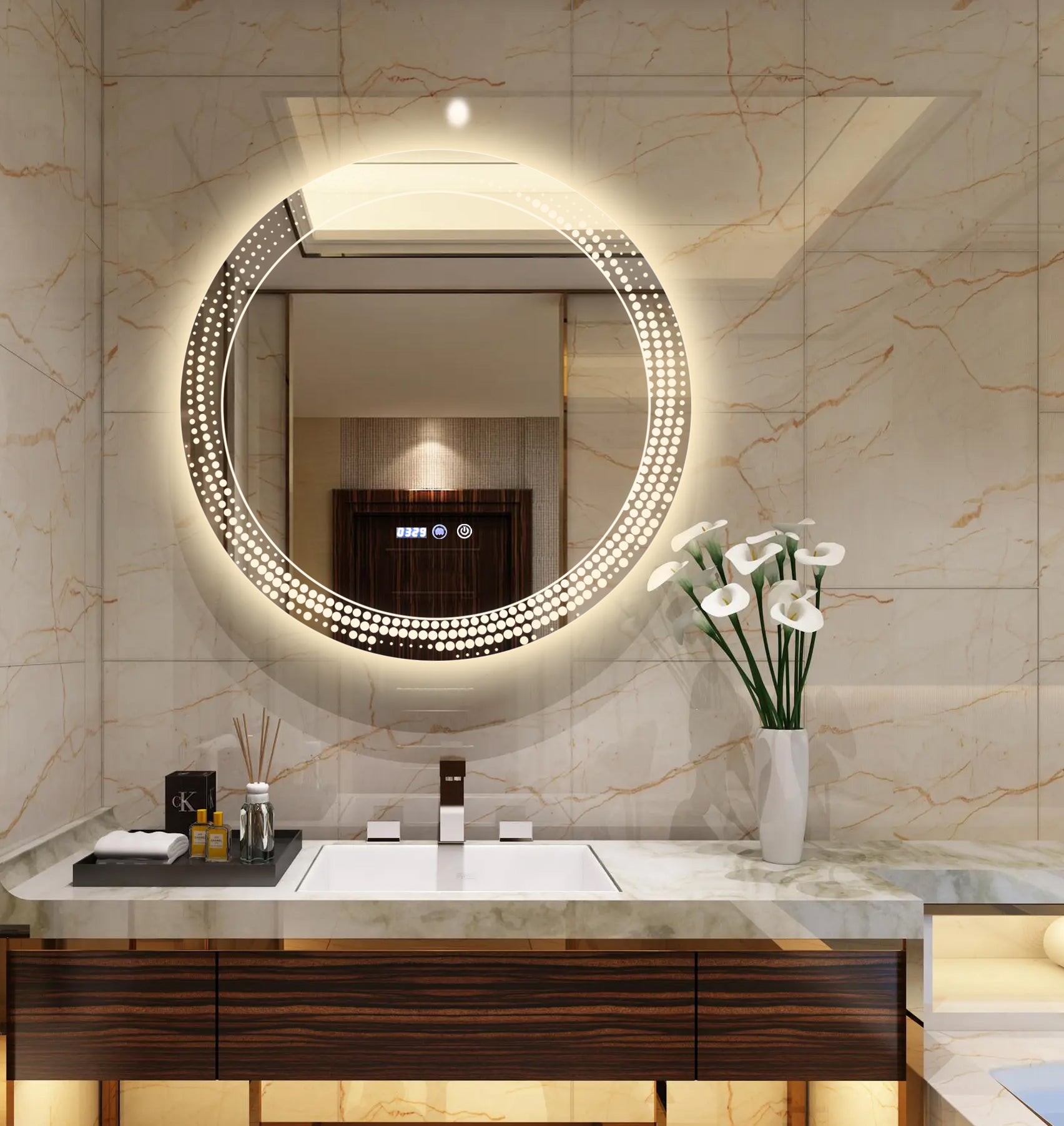 Oglinda LED si Touch, cu Functie Dezaburire si Ceas, 3 Tipuri De Lumina, 70 cm, J175 Smack