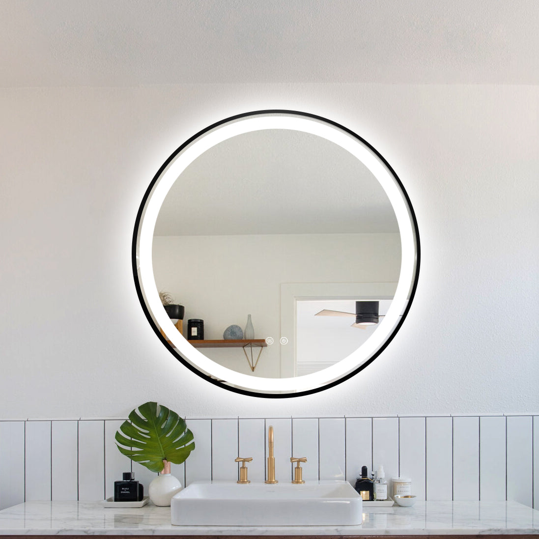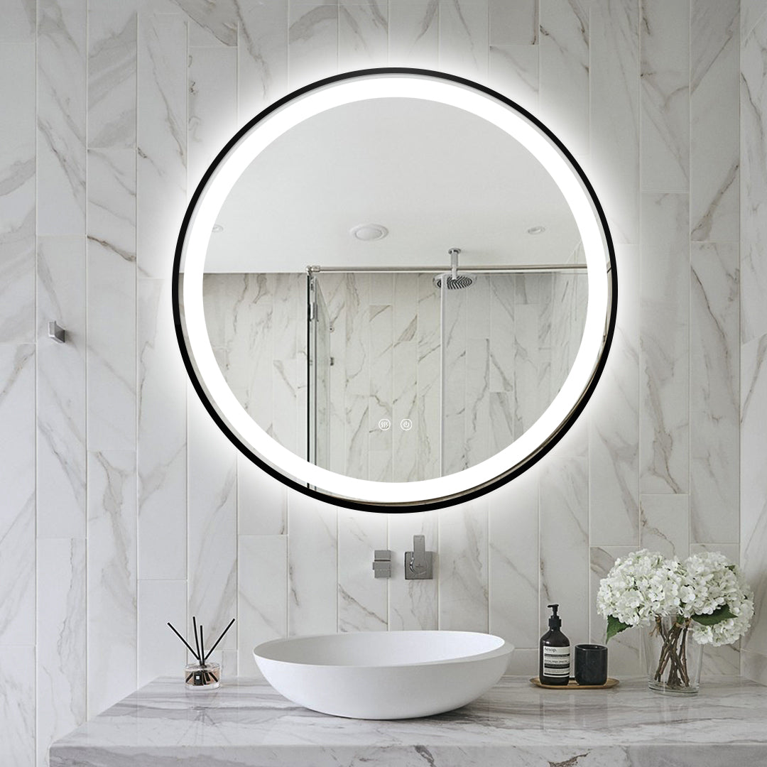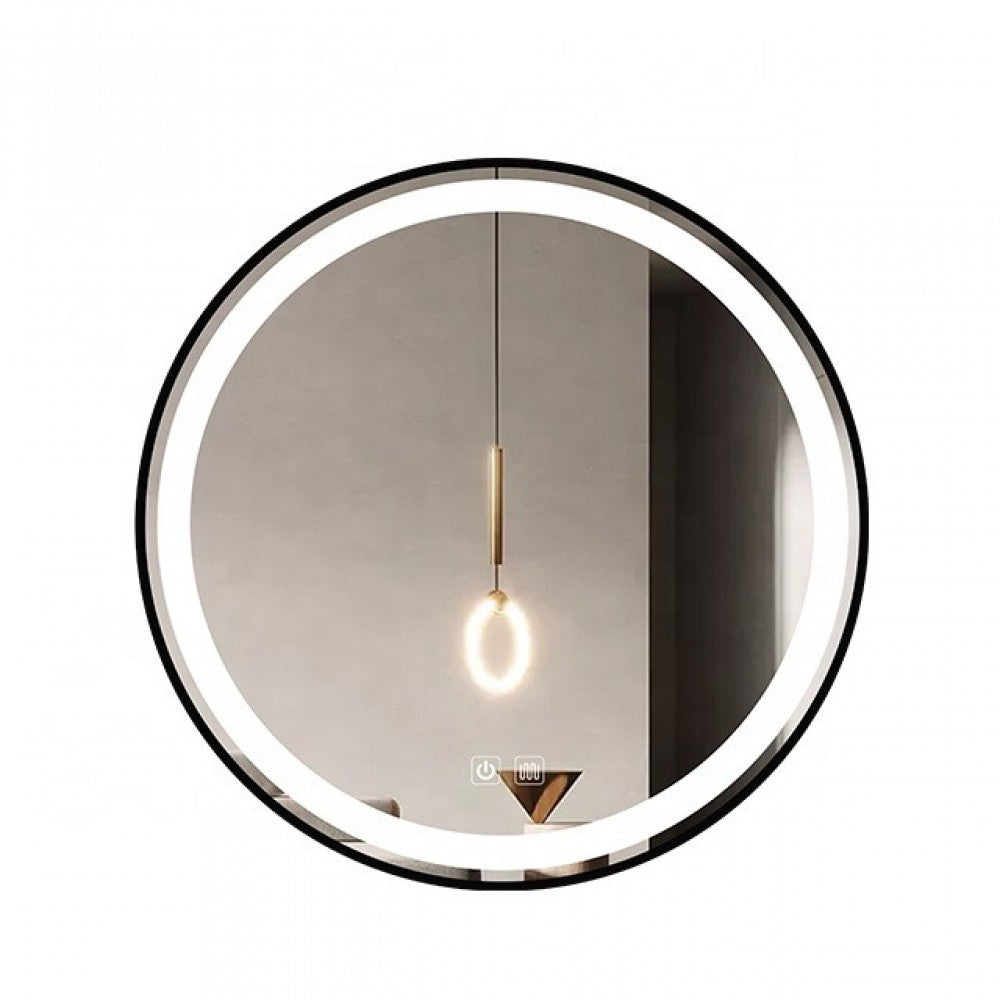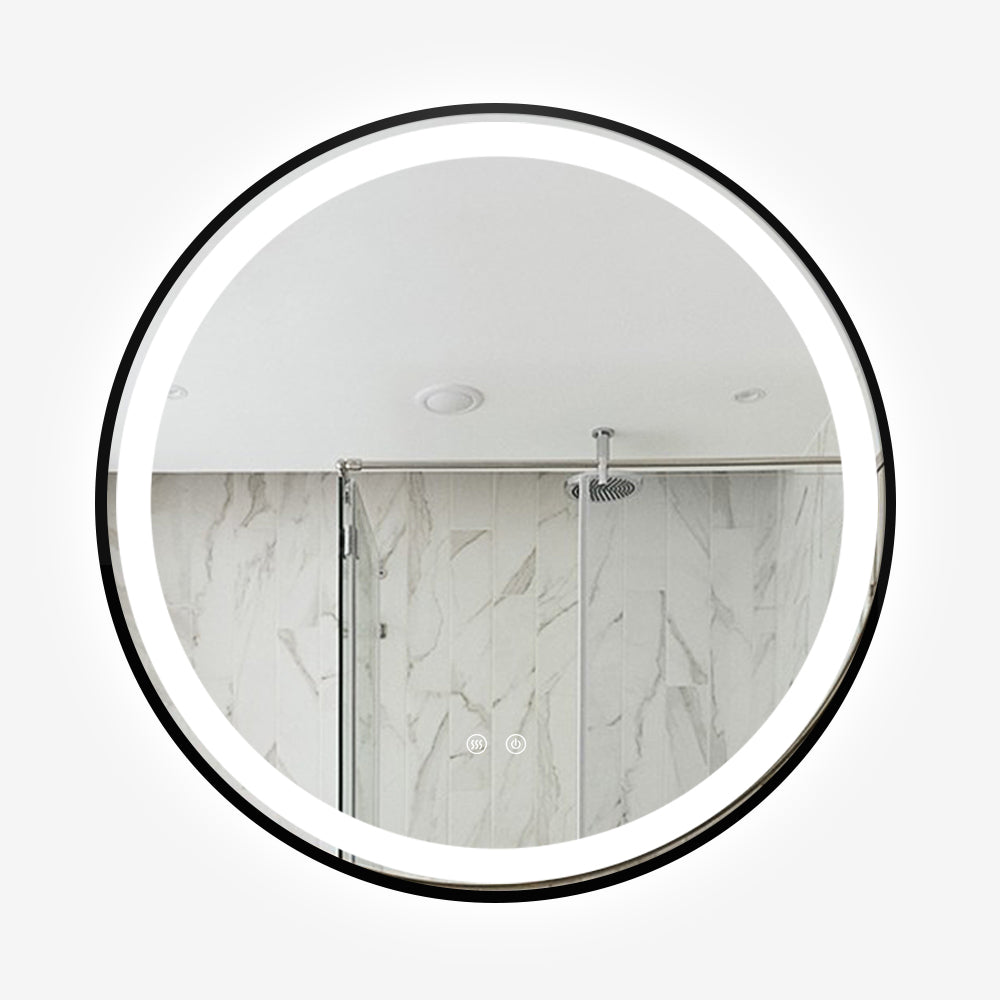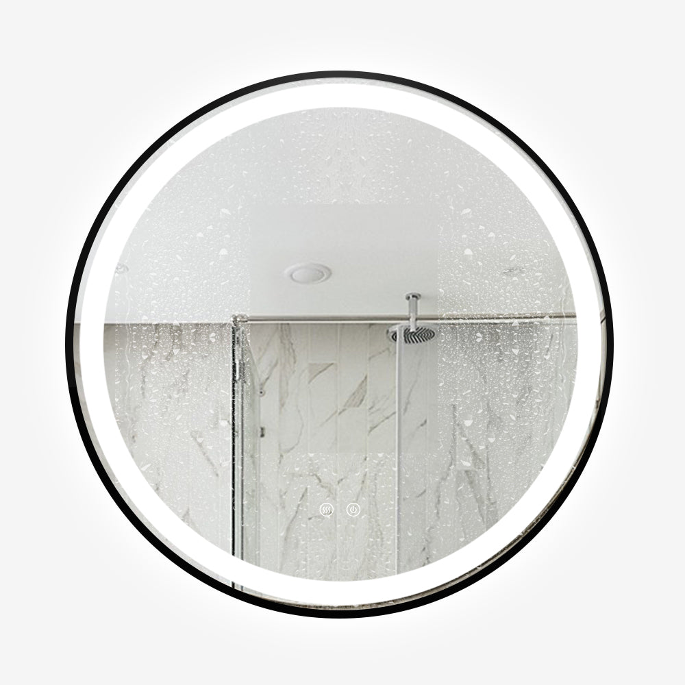 Oglinda Rotunda, 70 X 70 cm, Functie Dezaburire, Rama Negru Mat, LED Touch, Smack