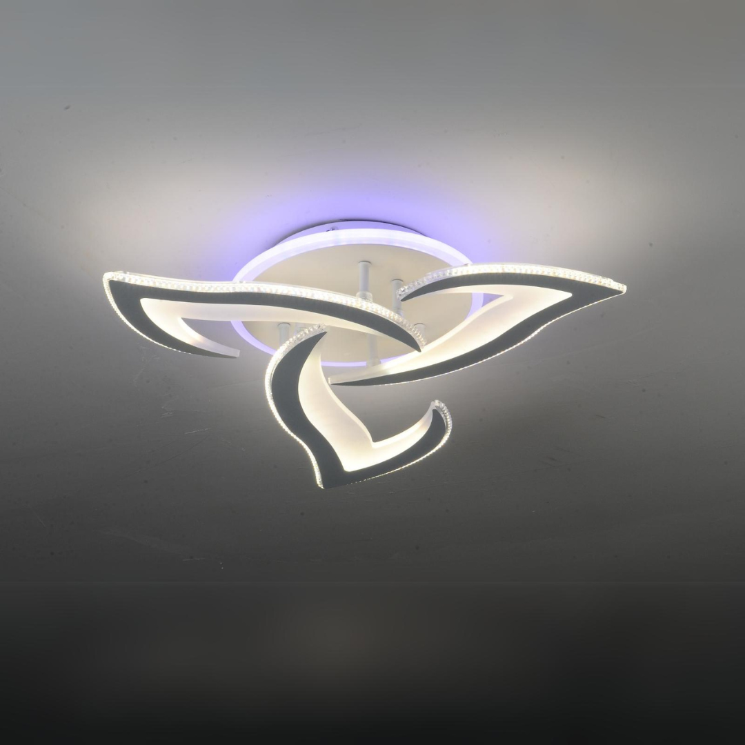 - Lustra LED RFAN 4 LED-uri cu telecomanda, 3 tipuri de lumina plus lumina RGB, intensitate reglabila.